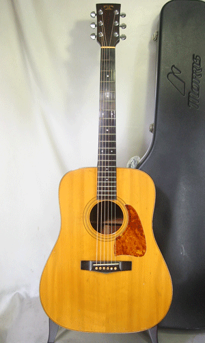 ビギナーからある程度のレベルまでずっとこれでやっていて・・中学の時にブルーグラスとも出会ってチャーリーウォーラー、ドックワトソン、クラレンスホワイトなどこれでコピーして練習してたんですよ。 当時兄の高校の後輩で天才ミュージシャンの足立さんという人がいてウチにもよく遊びに来てくれてました。とにかく素晴らしいブルーグラスギター・・とにかく目がくぎづけでした。 足立さんはフィドラーとして有名になっちゃってましたが僕にとってはギターの影響がものすごかったですね。 ビギナーの頃からの僕のあこがれのミュージシャンです。 まあとにかく・・そんなわけでブルーグラスが大好きになり、ブルーグラスをやるためにはとにかくスティール弦のギターが不可欠!!! あの頃はとにかくスティール弦のギターがほしかったんですねえ・・。 色んなカタログを集めてきて、あれこれ妄想をいだいてました。 休みの日は必ず楽器店に行ってギターを試奏させてもらう・・・6年生の夏休みから大阪豊中に引っ越していたので、いつも梅田まで出かけてナカイ楽器やワタナベ楽器に入りびたって・・・きっと煙たい存在だったんだろうなあ・・・。 そして高校生になって・・一応公立の高校に入ったらギター買ってやるという父の約束で、ついに買ってもらいました!! 今は存在しないメーカーでTAMAというブランドで(ドラムのTAMAとは違います。)、TAMA TG-80 いわゆるマーチンD-18のコピーモデル・・もちろん国産です。 ただ・・これも今は手元にないので・・またまたネット検索した写真です。